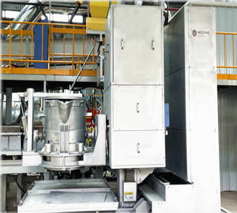采用鋼帶以包芯線機(jī)將稀土鎂合金包裹其中,制成合金包芯線,然后以喂線機(jī)將其喂入到鐵水處理包的底部來(lái)實(shí)現(xiàn)球化的目的